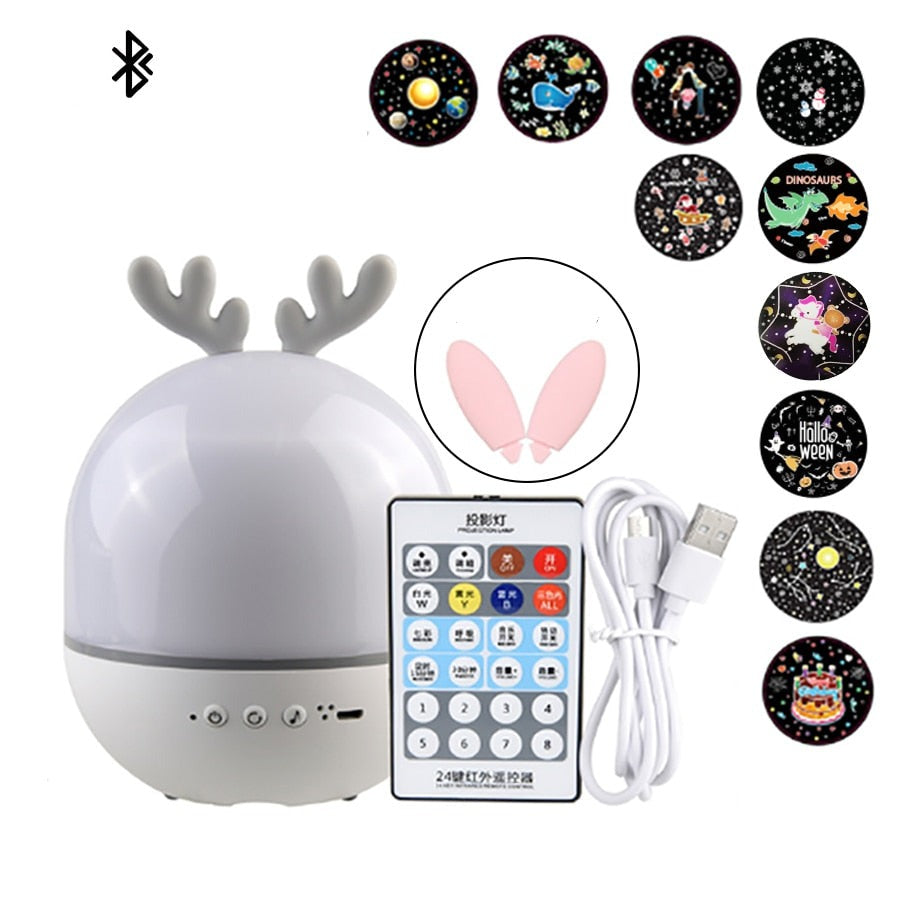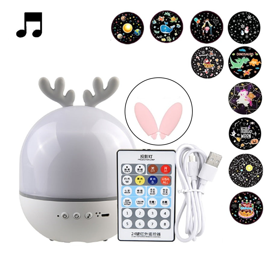 Har du eller barna dine vanskelig for å slappe av og sovne? Med dette magiske lyset og trøstende musikken vil du sove på et blunk! Bruk den som nattlys eller til å projisere roterende bilder i taket for å skape en romantisk og avslappende atmosfære.