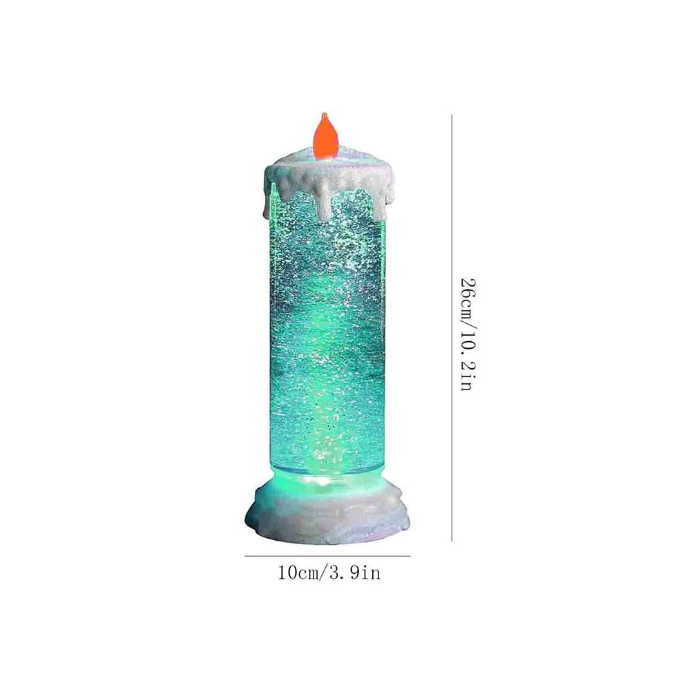 Glass Candle LED Night Light er laget av høykvalitets krystallglass. Dette slitesterke glasslyset har en vannbasseng fylt med glitter på innsiden. Når du slår på lyset, sirkulerer det dette glitteret og får hele rommet til å skinne. Dette søte lyset måler ca 25 cm i høyden og 8 cm i bredden.
