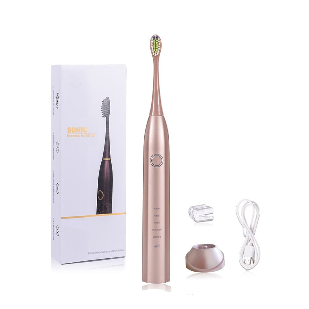 Start og avslutt hver dag med en kraftig rengjøringsopplevelse ulik alle andre med denne Sonic elektriske oppladbare tannbørsten. Den har nylonbust av høy kvalitet som hjelper effektivt å rense tennene og tannkjøttet som en del av et komplett tannhygieneregime. Få et hvitere, lysere smil med tannbørsten vår som sprenger bort plakk mens du pusser tennene dine!