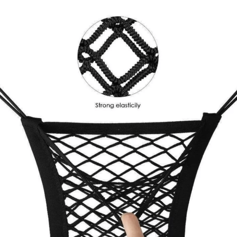 Elastisk finmaske og bredde, for å sikre generell bruk i de fleste biler. Kan brukes som et isolasjonsnettverk mellom for- og bakseter for å hindre barn eller kjæledyr i å kjøre bil.