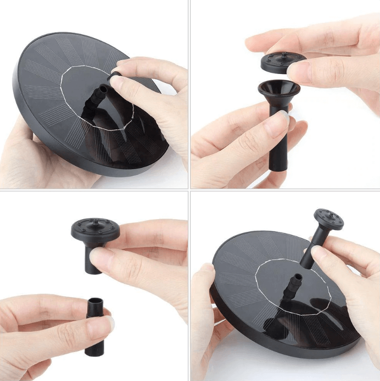 Vi gir deg den solcelledrevne hagefontenepumpen for å forbedre produktiviteten og skjønnheten til fuglebadet og fontenen din. Den driver med solens lys og sprayer vann i 4 forskjellige mønstre – ingen behov for batterier eller strøm.