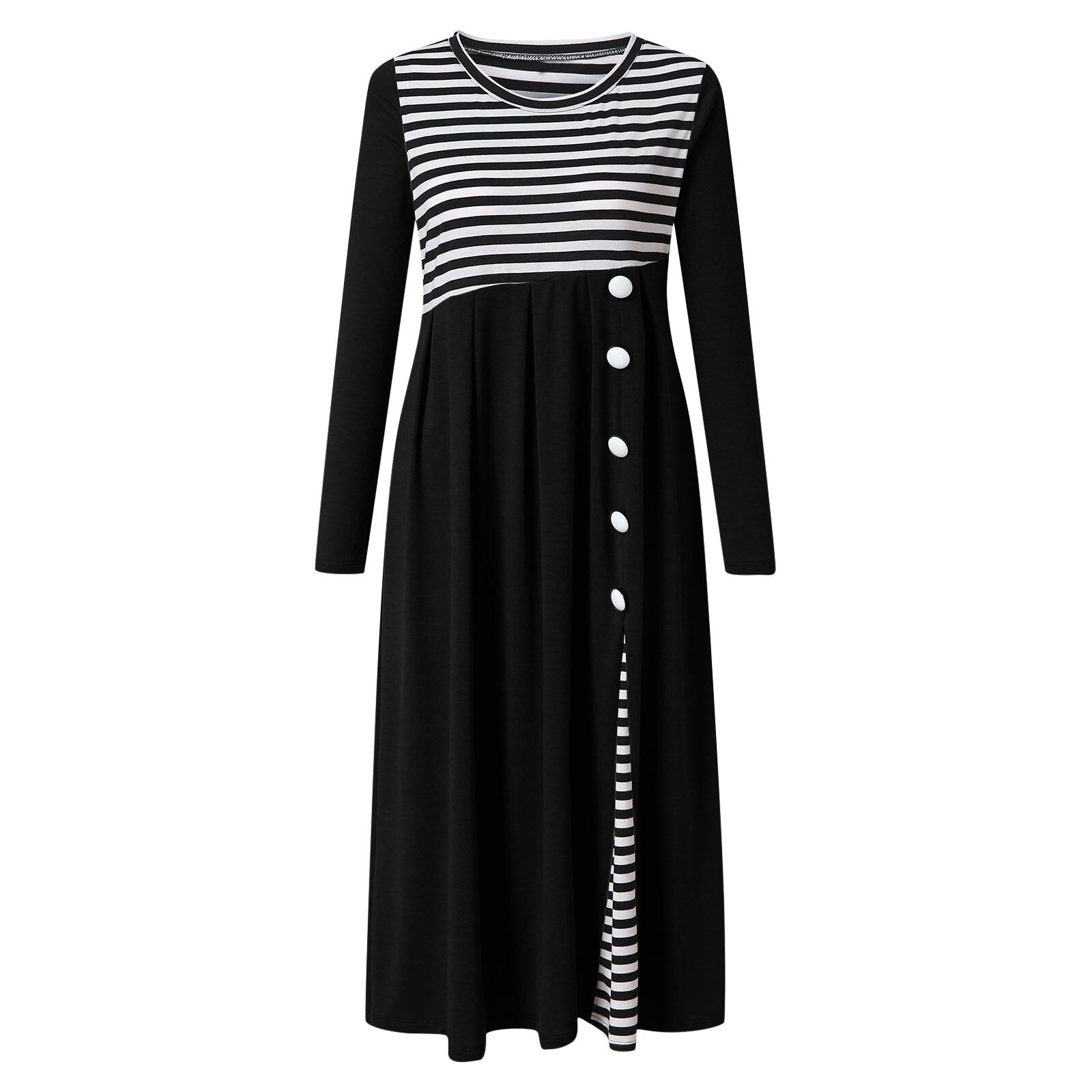 En vakker mini-lang maxikjole er en stift i mange dameskap. Du kan enkelt kle dette med hæler og et statement -kjede, eller holde det gøy med solbriller! Stripet langermet patchwork -kjole for kvinner vil være perfekt i garderoben din som en behagelig hverdagskjole.