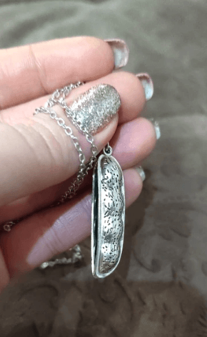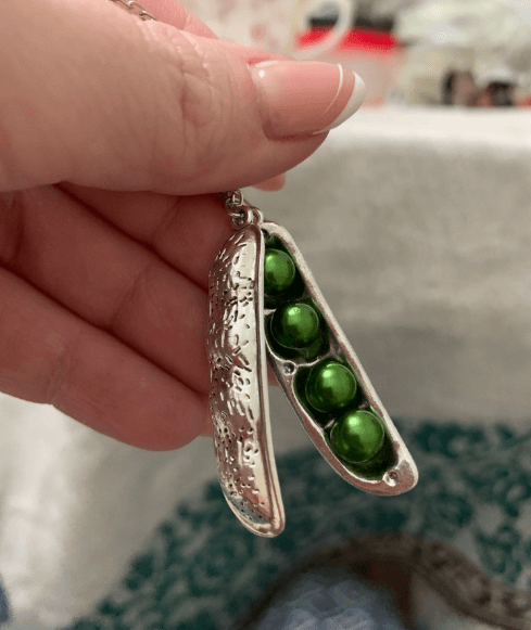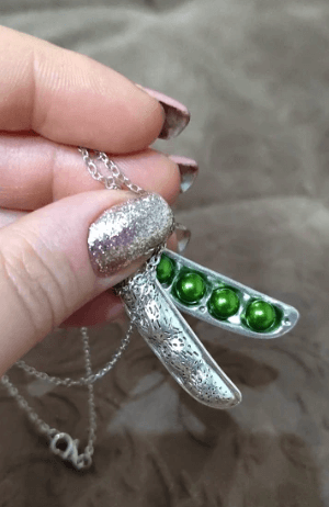 Den er dristig nok til å være merkbar under alle lysforhold og vinner nok til å snu hodet uansett hvor du går. Dette ertekjedet er unikt og morsomt og er et flott tillegg til ethvert antrekk. Sikker på å fange oppmerksomhet, dette sære smykket vil garantert være en samtalestarter!