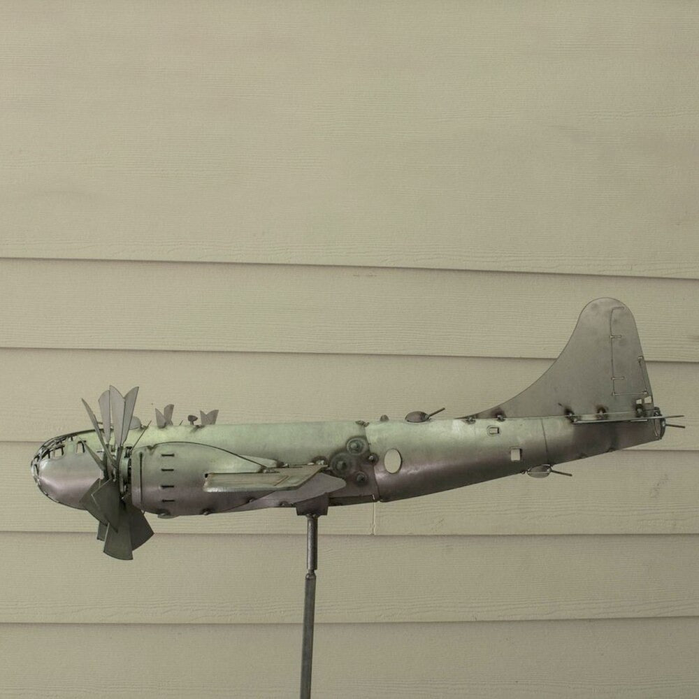 Legg til litt flynostalgi til plenområdet ditt med denne flyvindmøllen. Den er konstruert av rustfritt metall, og hjulbladene beveger seg i vinden. Denne vindsnurren gir et spennende samlingspunkt for en hage eller hage, eller du kan bruke den som et midtpunkt i festen!
